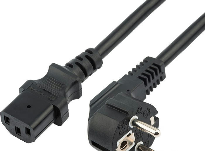 Данный шнур IEC оснащен с одной стороны неразборной литой вилкой (евростандарт) с заземляющим контактом, с другой — литым трехконтактным гнездовым разъемом C13 и трехжильным проводом с сечением жил 1.5 мм².