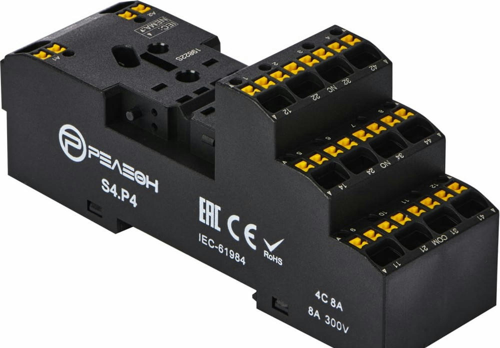 Релеон, Розетка с push in клеммами для реле RP4.34 и модуля PM8; 10А, S4P4